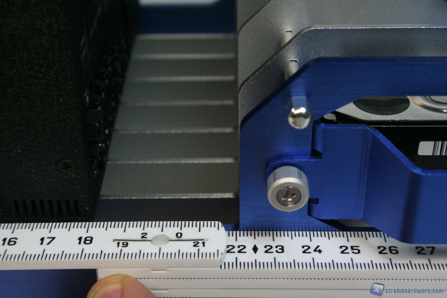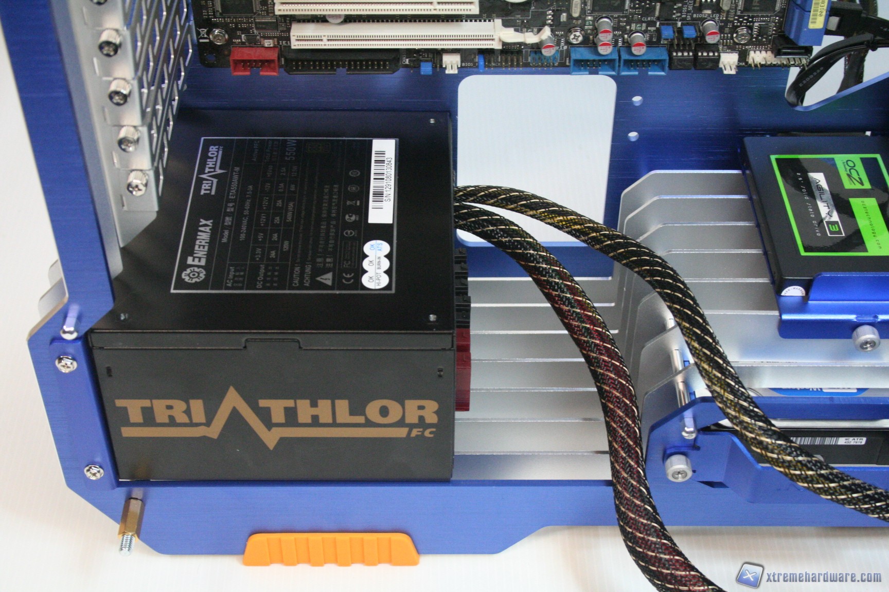 Il posizionamento dell’alimentatore è classico, quindi nella parte inferiore e posteriore dello chassis. E’ possibile installare due distanziatori gommati forniti nel bundle e la lunghezza massima consentita è pari a 22cm, anche se è consigliabile non andare oltre i 18. Si inserisce facilmente ed il fissaggio avviene tramite consuete viti filettate posteriori, tool-less. Il cablaggio però è leggermente caotico in quanto non esiste un sistema per il passaggio forzato dei cavi, e purtroppo notiamo che IN WIN dovrebbe porre maggiore attenzione in materia, similmente a quanto già visto per l’X-Frame. Ricordiamo che è comunque possibile acquistare dei passacavi adesivi, in ferramenta. Anche in questo caso, data la particolarità del prodotto, data la struttura assolutamente atipica e data l’organizzazione interna assolutamente peculiare, è comprensibile che ci sia qualche elemento da rivedere, o migliorare in futuro. Comunque sia come potete osservare dalle foto il problema è decisamente relativo e basta un minimo di organizzazione dei cavi per risolverlo, ed ottenere un buon risultato.