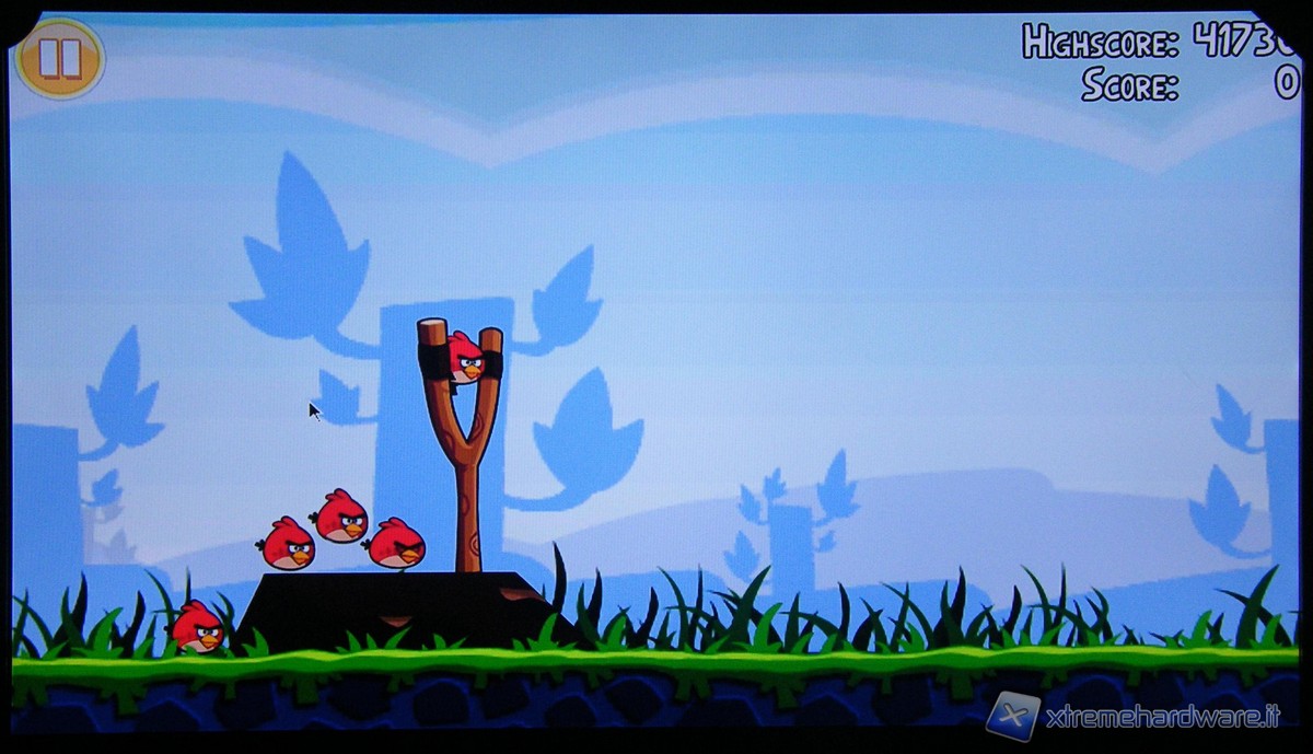 L'avvio del browser è quasi istantaneo e la visualizzazione delle pagine web è quasi sempre rapida. L'azione di scroll tramite l'apposito pulsante dotato di frecce ci è sembrata piuttosto ben funzionante nella navigazione online. Segnaliamo la presenza di occasionali rallentamenti durante l'utilizzo del dispositivo, comunque rari e di breve durata, tali da non comprometterne mai l'utilizzo. Inizialmente ritenevamo che tali rallentamenti fossero da imputare a limiti del processore e/o della RAM di sistema in certi frangenti. Tuttavia, dopo un utilizzo prolungato della tastiera e del mouse in luogo del telecomando incluso, abbiamo riscontrato l'assenza dei suddetti. E' probabile quindi che questi piccoli rallentamenti sporadici siano dovuti soprattutto a fenomeni di lag che riguardano l'Air mouse. Riguardo ai filmati in HD abbiamo riscontrato una buona fluidità, segno della bontà dell'hardware utilizzato. Dobbiamo qui segnalare qualche problema con la codifica di alcuni filmati: per esempio nel caso di alcuni filmati HD presenti su YouTube, che nella visualizzazione dal pc ci sembrano di buona qualità, riscontriamo una resa visiva non pienamente soddisfacente, soprattutto un effetto di sgranamento, specie nelle ombre. Ci appare poi utile la possibilità di visualizzare foto o documenti in maniera estremamente rapida e semplice, oltre alla possibilità di ascoltare musica (ci è sembrata a riguardo più che buona la qualità di riproduzione dei brani musicali), sia on line sia tramite supporti esterni. Anche i giochi, che sono quelli di Android, ci hanno fatto una buona impressione, essendo graficamente piacevoli ed estremamente fluidi. Ce ne sono alcuni preinstallati, come Angry Birds (nel quale possiamo dire che il sistema di controllo con l'Air mouse si rivela molto intuitivo ed efficace), poi ovviamente possiamo installarne altri, gratuiti o a pagamento, tramite l'utilizzo dell'Android Market. (Sotto: il gioco preinstallato Angry Birds)