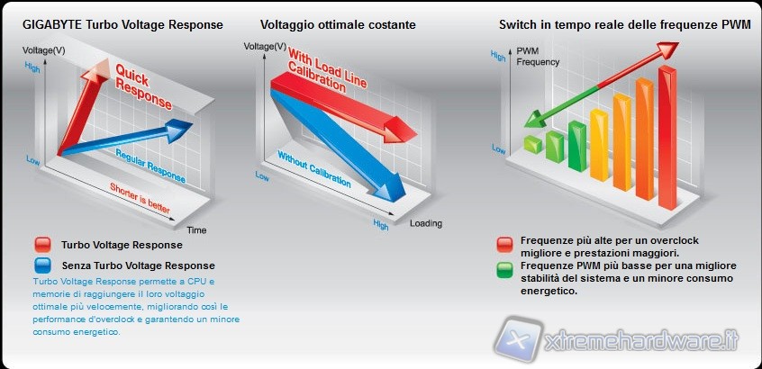 • Turbo Voltage Response: Si possono scegliere 4 livelli che equivalgono a tempi di risposta più brevi del sistema di alimentazione, a secondo del livello di overclock che si sta effettuando.
