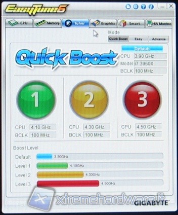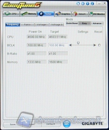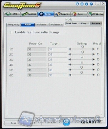 E’ lo strumento con cui si possono eseguire overclock direttamente dal sistema operativo, senza bisogno di riavviare il sistema o ancor meno entrare nel BIOS per effettuare ogni volta le modifiche. Come si evince dagli screen il tool consta di 6 schede. Tuner in modalità Easy permette di scegliere tra 3 livelli di overclock ed imposta automaticamente i parametri di frequenza e tensione.