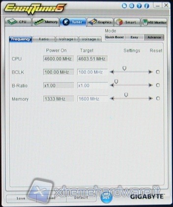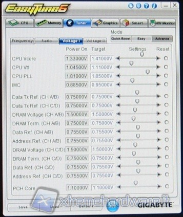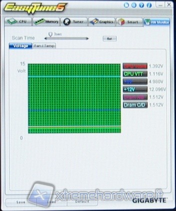 Le altre schede dell’ EasyTune6 sono indicative e forniscono più che altro informazioni utili a completare e tenere sott’occhio le frequenze, le tensioni e le temperature raggiunte dai componenti.